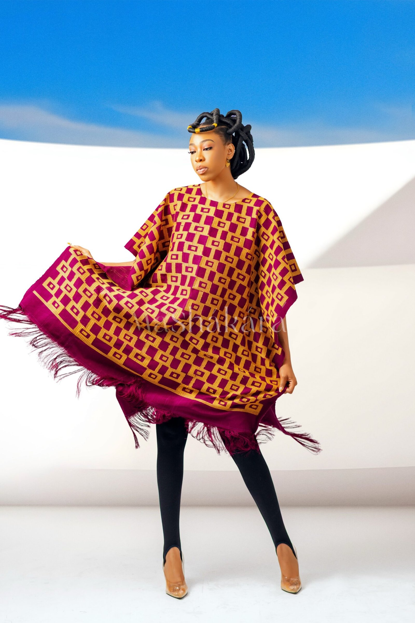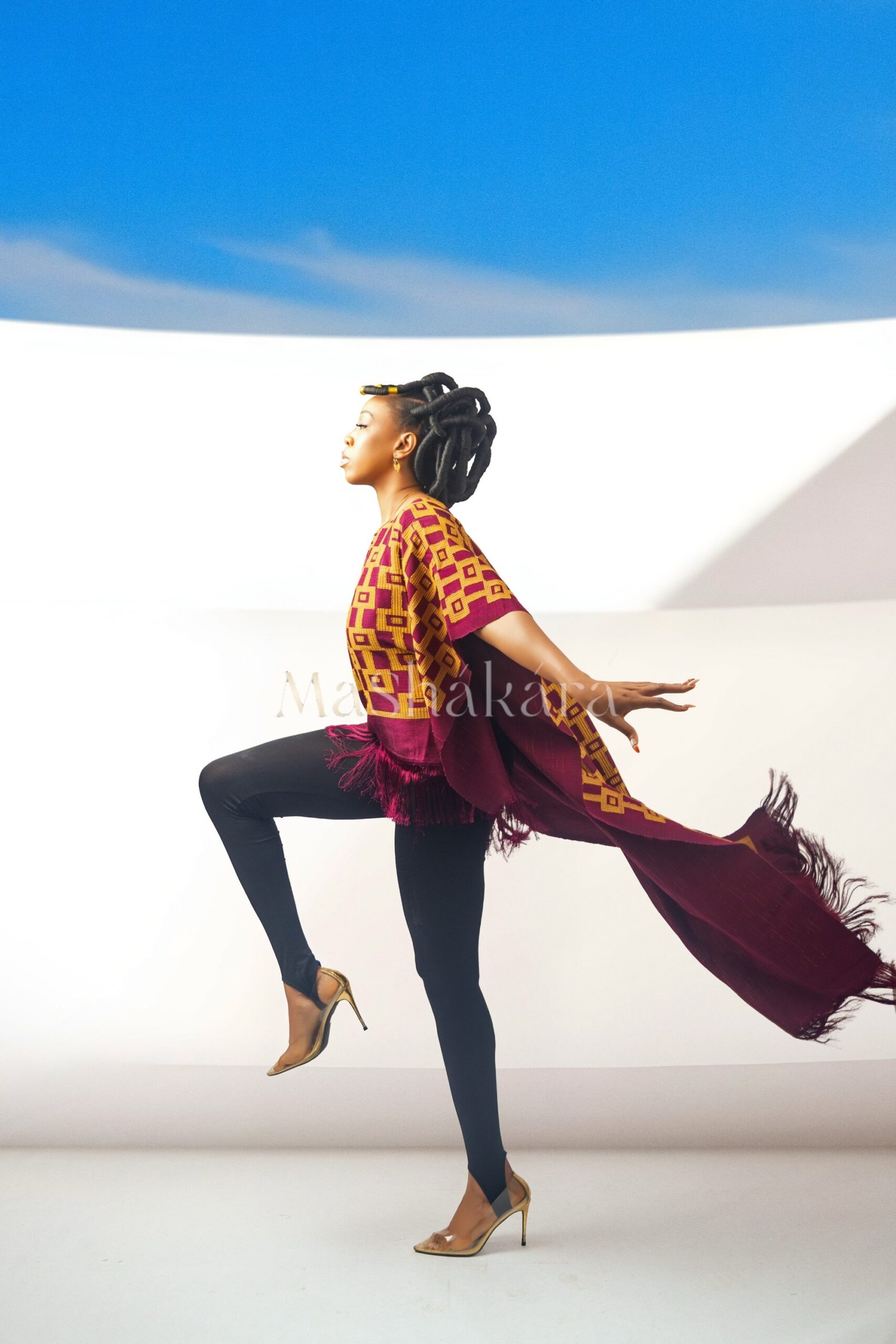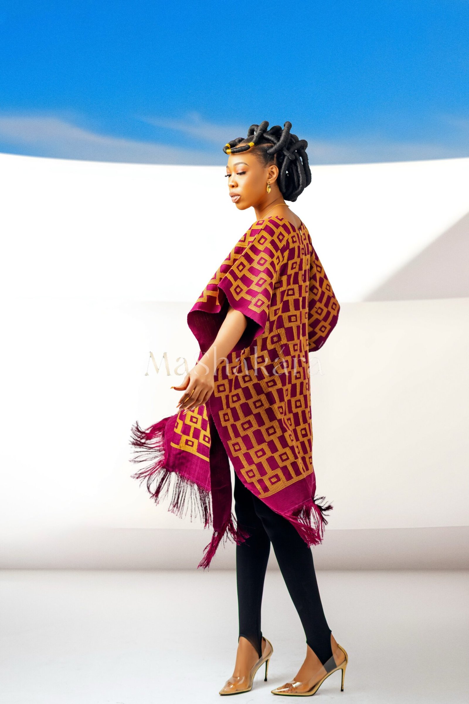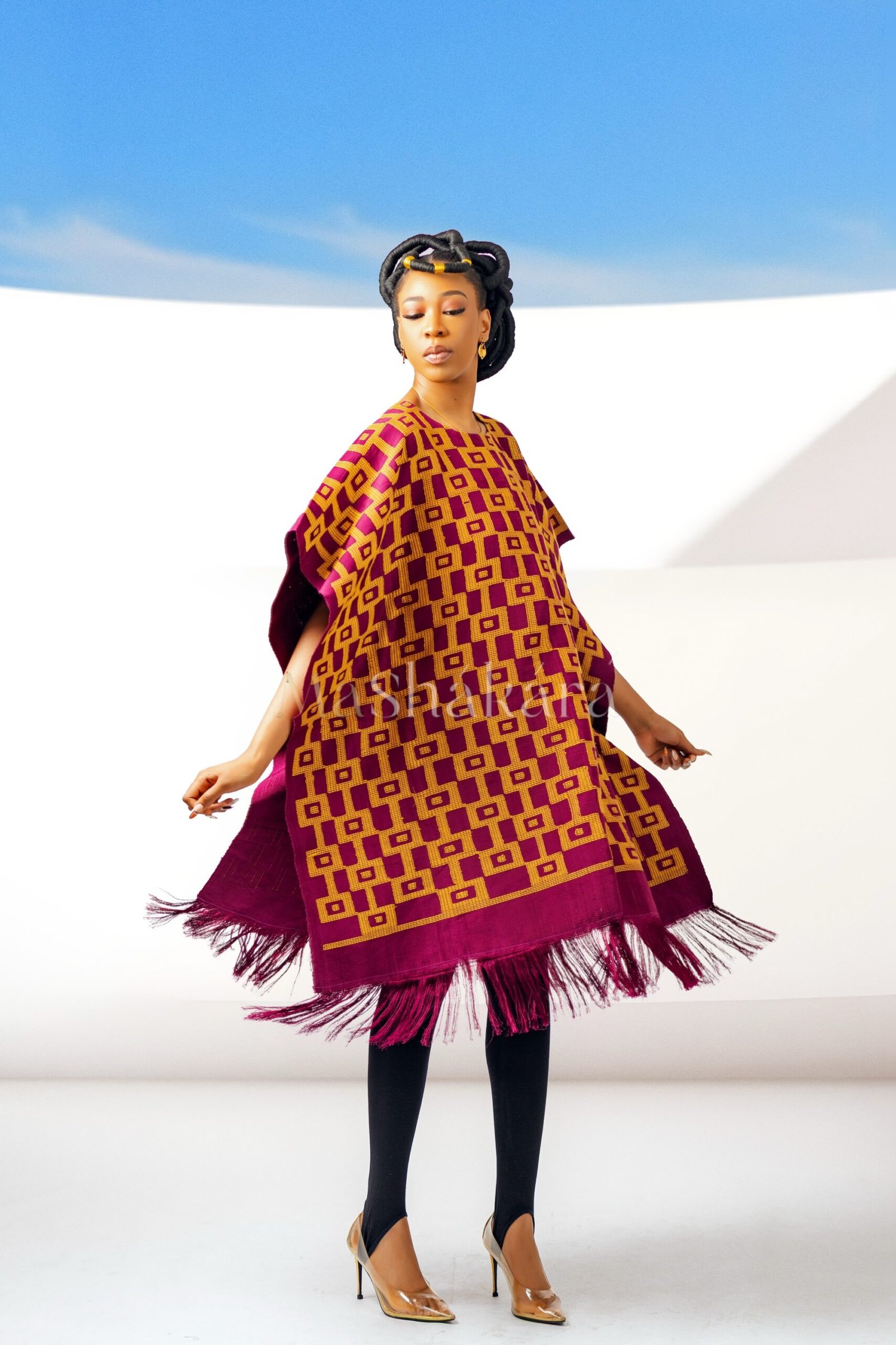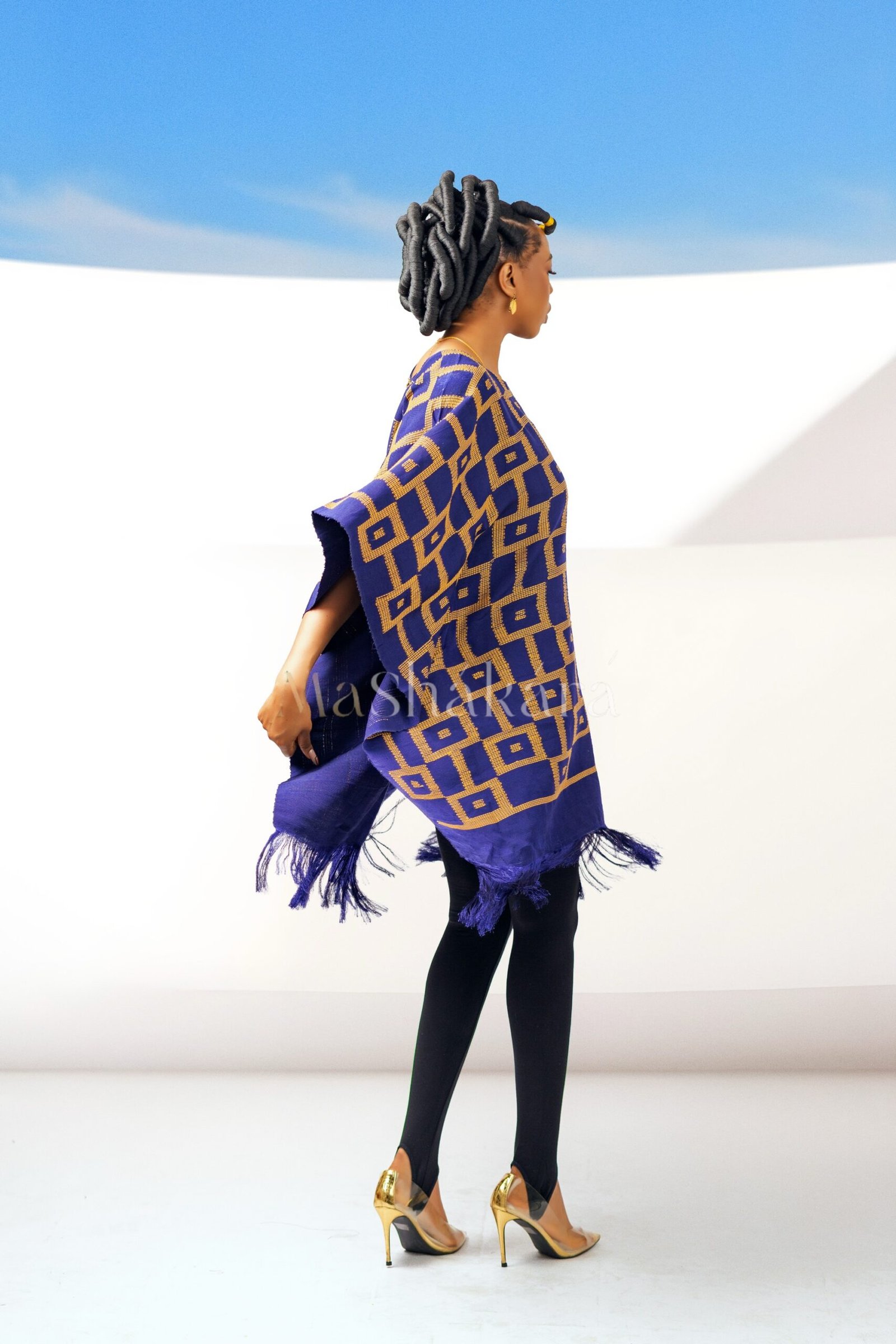Each cape celebrates Africa’s weaving traditions and architectural storytelling. The piece is meticulously handwoven by Nigerian women, preserving generational knowledge while reinterpreting it for the contemporary woman who values cultural heritage.